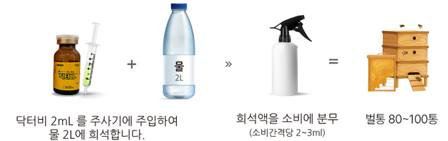 사용방법본제 2mL에 물 2L를 섞어 분무(2~3월, 7~11월)